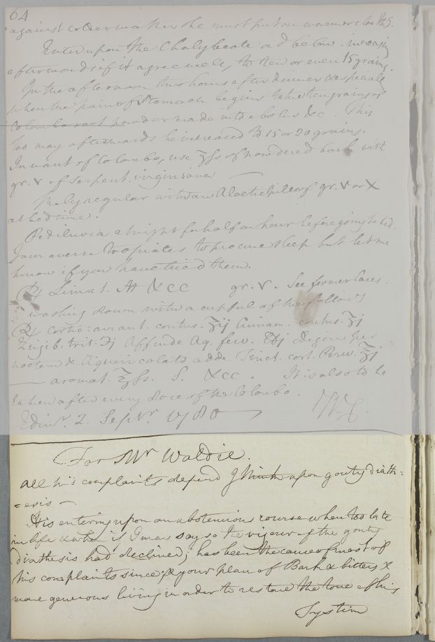 | Summary | Reply 'For Mr Waldie', whose complaints 'depend I think upon gouty diathesis'. |