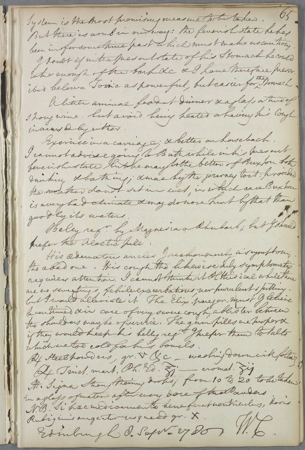 Reply 'For Mr Waldie', whose complaints 'depend I think upon gouty diathesis'.