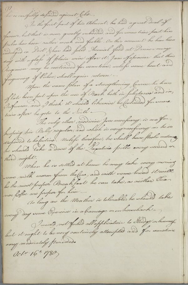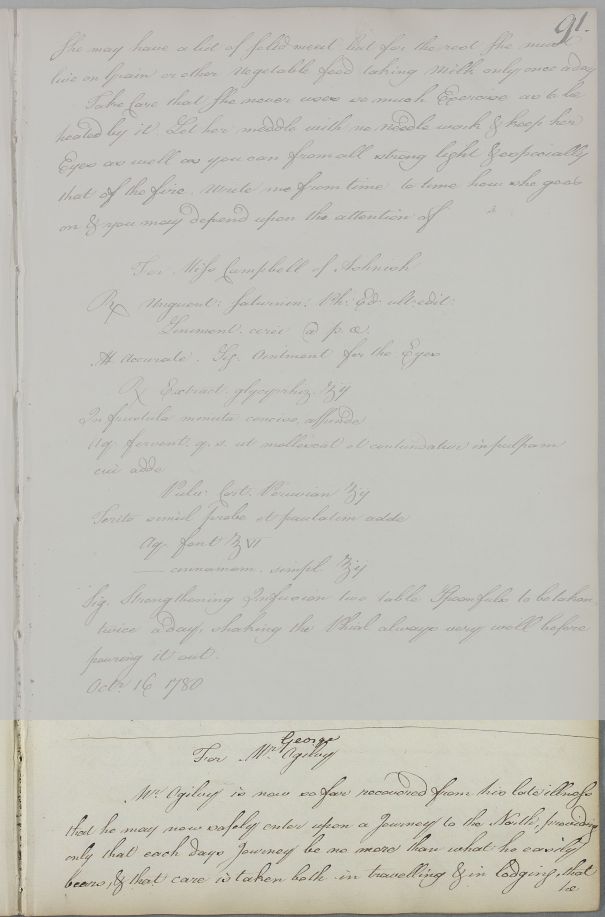 [ID:1036] From: Dr William Cullen (Professor Cullen) / To: Dr Thomas Livingston / Regarding: George Ogilvy (at Green Hall) (Patient) / 16 October 1780 / (Outgoing)