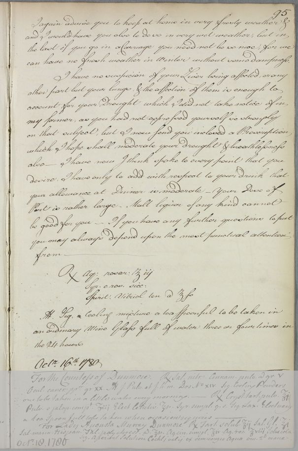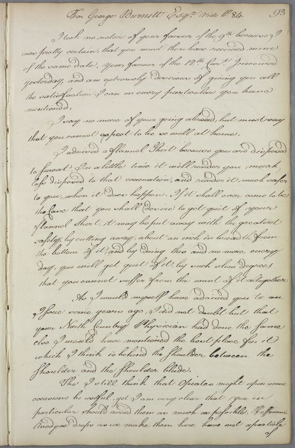 [ID:1037] From: Dr William Cullen (Professor Cullen) / To: Sir George Burnet(t) (Burnett of Kemnay) / Regarding: Sir George Burnet(t) (Burnett of Kemnay) (Patient) / 16 October 1780 / (Outgoing)