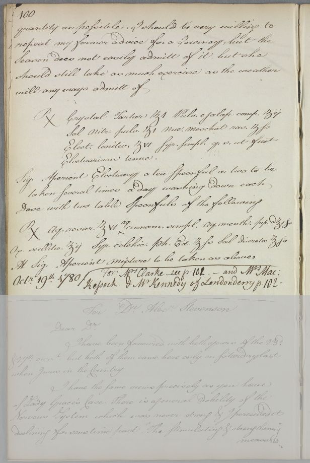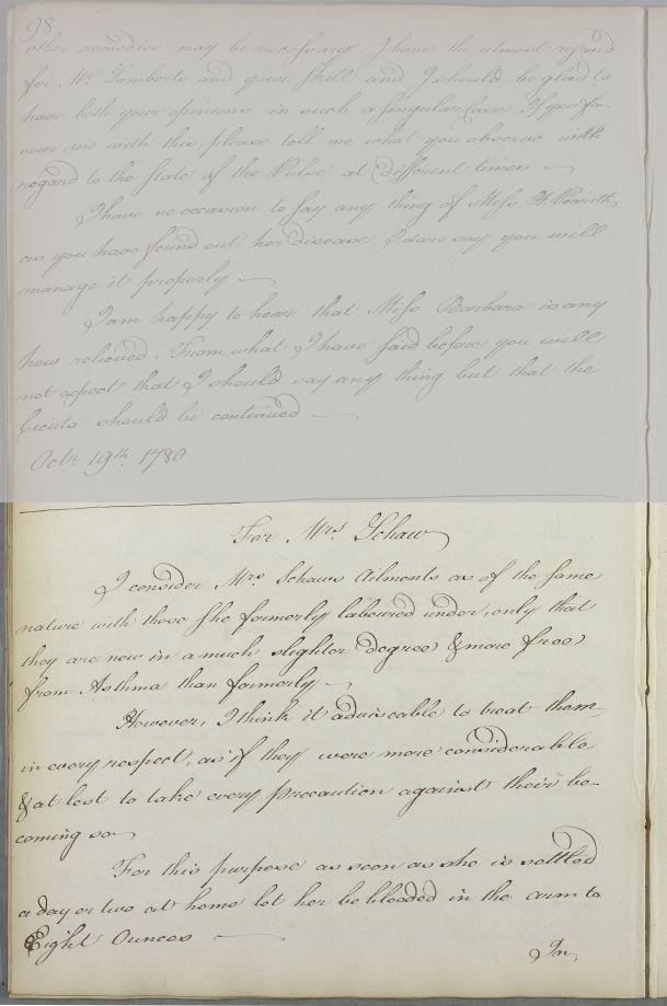 [ID:1041] From: Dr William Cullen (Professor Cullen) / To: [ADDRESSEE UNKNOWN] / Regarding: Mrs Schaw (Shaw) (Patient) / 19 October 1780 / (Outgoing)