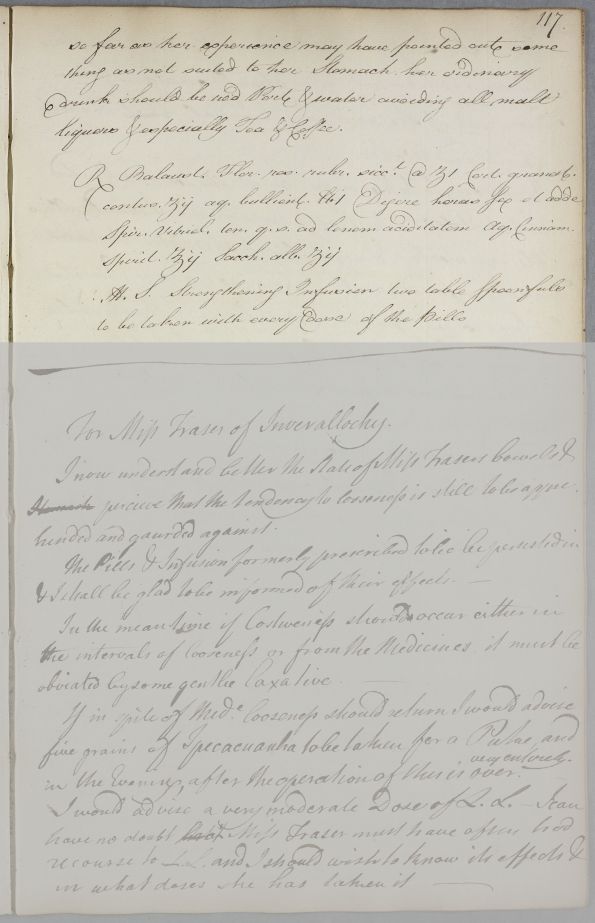 [ID:1057] From: Dr William Cullen (Professor Cullen) / To: [ADDRESSEE UNKNOWN] / Regarding: Miss E Fraser (Miss Fraser of Inverallochy) (Patient) / December 1780 / (Outgoing)