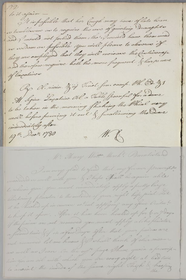 [ID:1063] From: Dr William Cullen (Professor Cullen) / To: Bernard Schaw (Shaw) / Regarding: Mrs Schaw (Shaw) (Patient) / 19 December 1780 / (Outgoing)