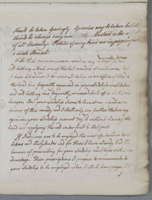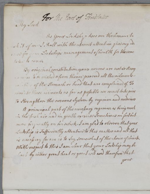 Case of the Earl of Findlater who is advised on a regimen to manage his nervous weakness. See also Case 119. |