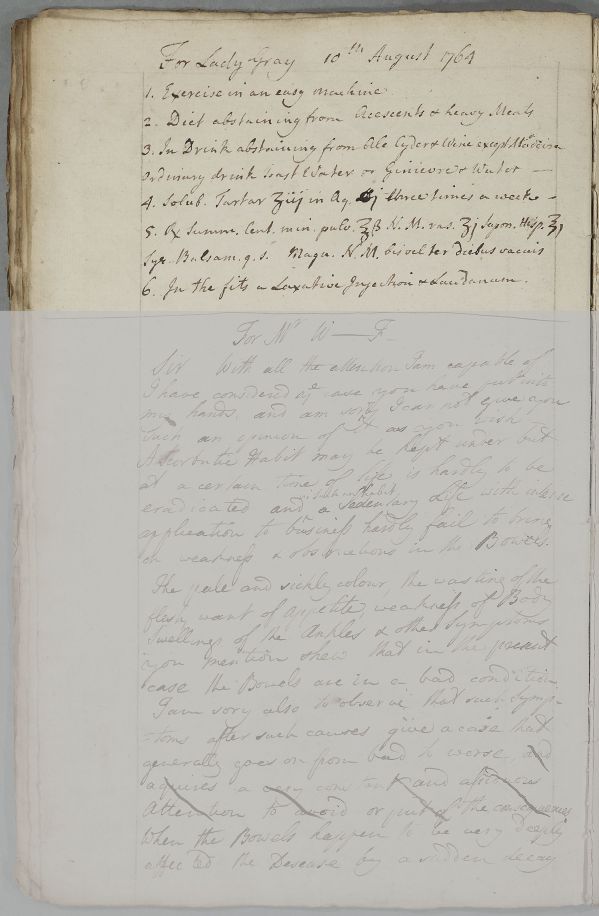 Case of Lady Gray who is given a regimen and a recipe to treat her 'fits' (this could allude to feverishness). |