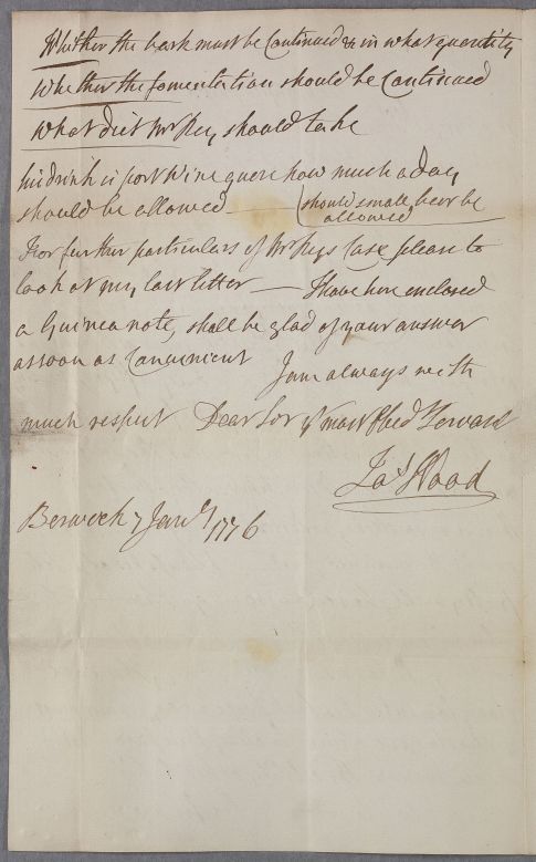 | Summary | Letter from the Berwick surgeon James Wood regarding the case of Mr Key, who has 'mortification' in several of his toes. |