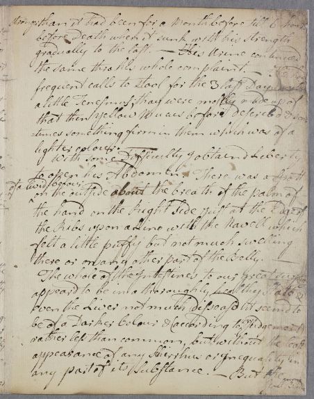 it encreas'd greatly. Also ↑that Day↑ his Pulse was feeble; &