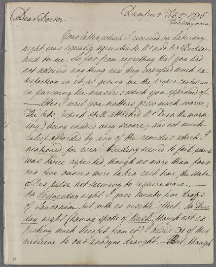 [ID:1247] From: [AUTHOR UNKNOWN] / To: Dr William Cullen (Professor Cullen) / Regarding: Mr Dickson (Dixon) (Patient) / 27 February 1776 / (Incoming)