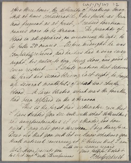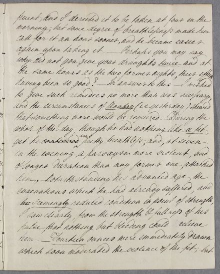 | Summary | Letter from John Gilchrist regarding the progress and treatment of Mr Dickson, which is Gilchrist's first asthmatic case - and informing Cullen that both Mr and Mrs Dickson found Cullen's reply 'equally agreeable'. |