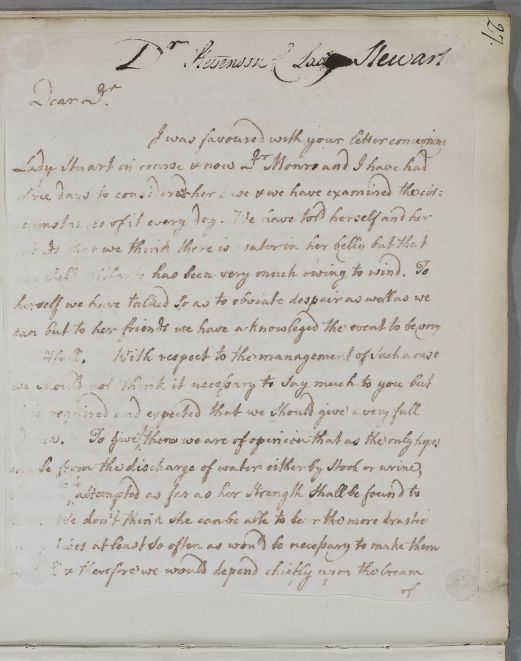 | Summary | Reply 'Dr Stevenson C[oncerning] Lady Stewart', giving the recommendations of Cullen and Monro who have considered the case together. |