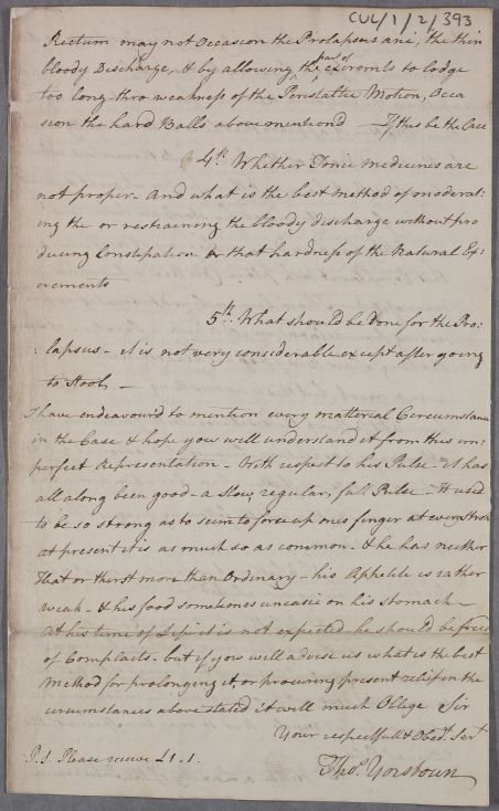 Case of the Reverend Peter Yorstoun who has piles and related complaints. |