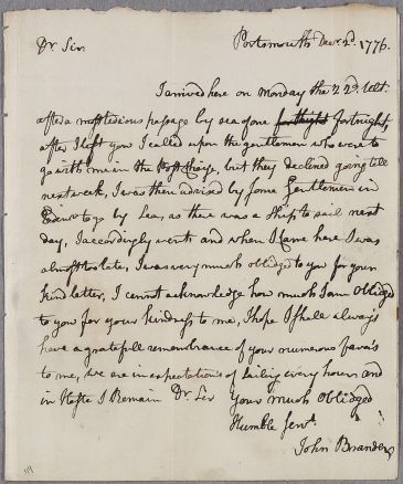 [ID:1328] From: Mr John Brander / To: Dr William Cullen (Professor Cullen) / Regarding: Mr John Brander (Patient) / 2 December 1776 / (Incoming)