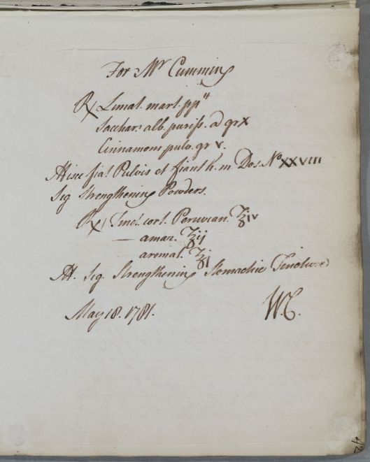 [ID:135] From: Dr William Cullen (Professor Cullen) / To: [ADDRESSEE UNKNOWN] / Regarding: Mr Cuming (Cumming) (Patient) / 18 May 1781 / (Outgoing)