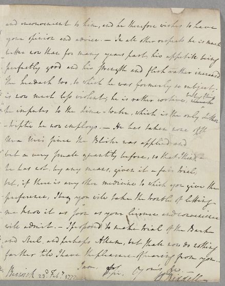 [ID:1370] From: Dr Walter Riddell / To: Dr William Cullen (Professor Cullen) / Regarding: Mr W Burnet (Burnett) (Patient) / 23 February 1777 / (Incoming)