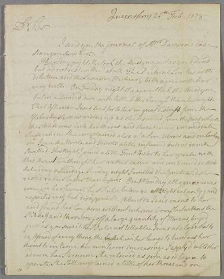 [ID:1372] From: George McCallum / To: Dr William Cullen (Professor Cullen) / Regarding: Mrs Davison (Davidson) (Patient) / 24 February 1779 / (Incoming)