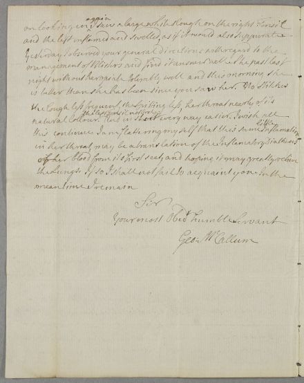 | Summary | Letter from George McCallum, concerning the case of Mrs Davison. |