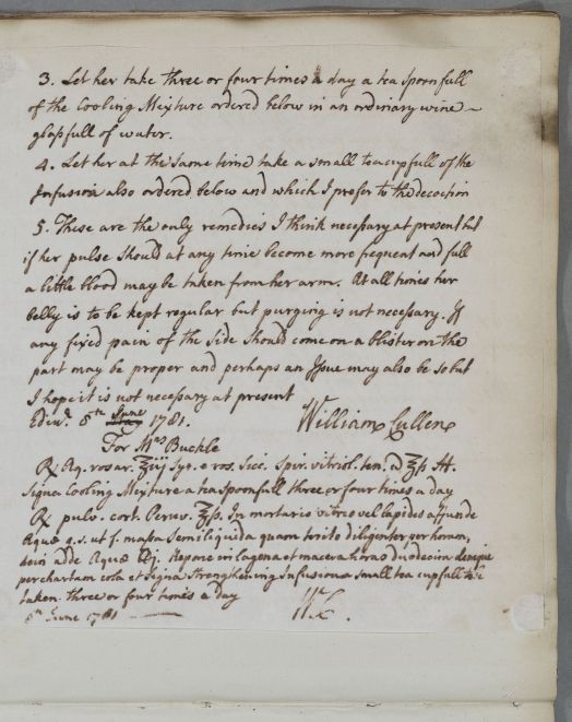 [ID:140] From: Dr William Cullen (Professor Cullen) / To: [ADDRESSEE UNKNOWN] / Regarding: Mrs Buckle (Patient) / 8 June 1781 / (Outgoing)
