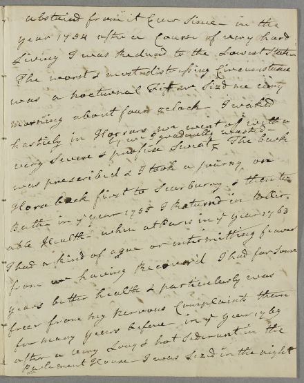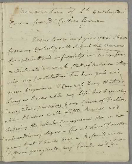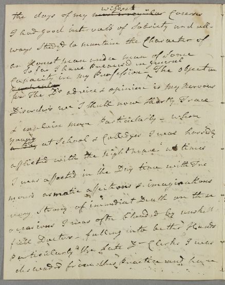 | Summary | Letter from Francis Garden, Lord Gardenstone regarding his own case, in which he gives a full account of the 'weak state of his nerves' since childhood and explains his struggles to manage various episodes marked by some disconcerting 'fits' of mental anxiety. |