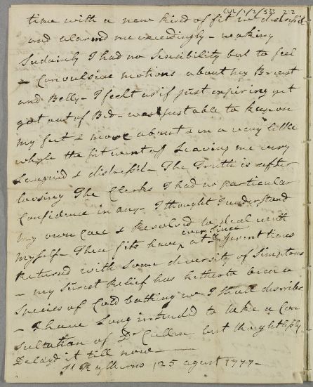 Letter from Francis Garden, Lord Gardenstone regarding his own case, in which he gives a full account of the 'weak state of his nerves' since childhood and explains his struggles to manage various episodes marked by some disconcerting 'fits' of mental anxiety.