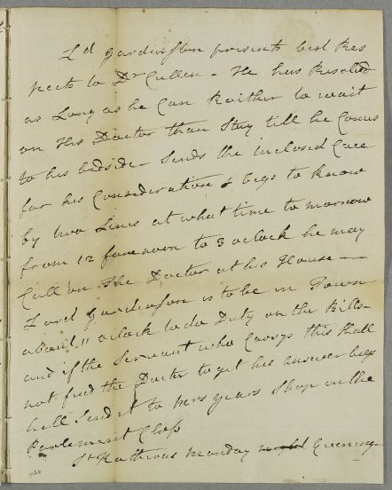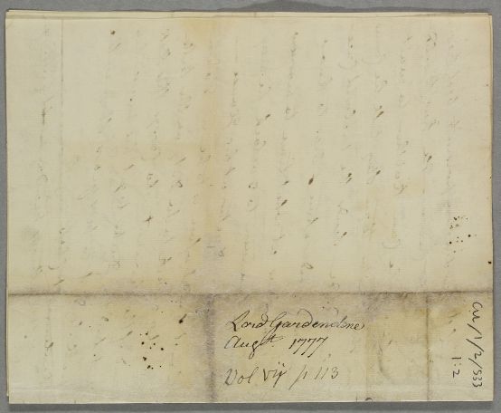 [ID:1438] From: Lord (Judge) Francis Garden (Lord Gardenston(e)) / To: Dr William Cullen (Professor Cullen) / Regarding: Lord (Judge) Francis Garden (Lord Gardenston(e)) (Patient) / 25 August 1777 / (Incoming)