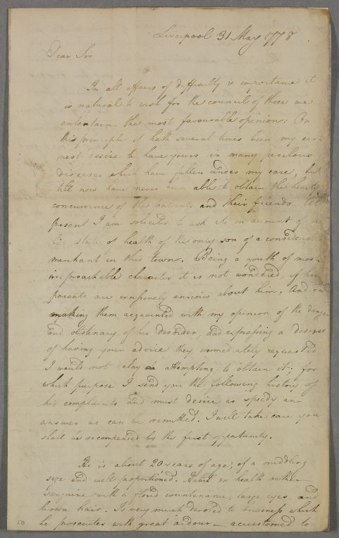[ID:1513] From: Dr Joseph Brandreth / To: Dr William Cullen (Professor Cullen) / Regarding: Mr T Dickson (Patient) / 31 May 1778 / (Incoming)