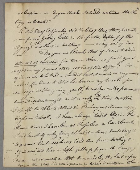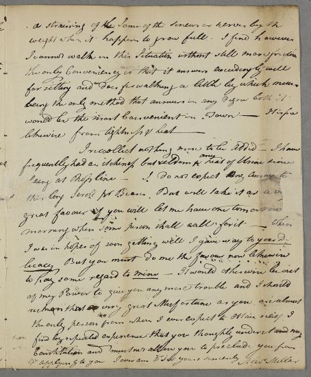 Case of Alexander Miller who seeks Cullen's advice on the better management of a 'bandage' to his abdomen which impedes his ability to to attend 'the Session' (he is presumably in the legal profession). |
