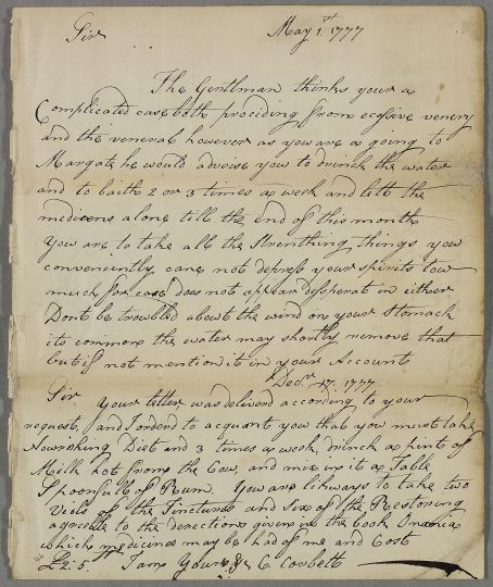 [ID:1526] From: Miss Corbett (Corbert) / To: [ADDRESSEE UNKNOWN] / Regarding: Mr Robert Ligertwood (Patient) / 1 May 1777 / (Incoming)
