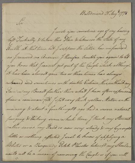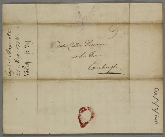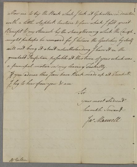 [ID:1549] From: Captain James Maxwell / To: Dr William Cullen (Professor Cullen) / Regarding: Captain James Maxwell (Patient) / 21 August 1778 / (Incoming)