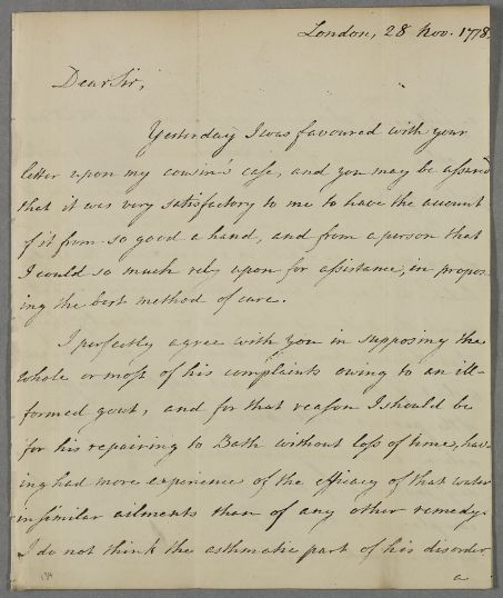 | Summary | Letter from John Pringle, concerning the case of his cousin's gout. |