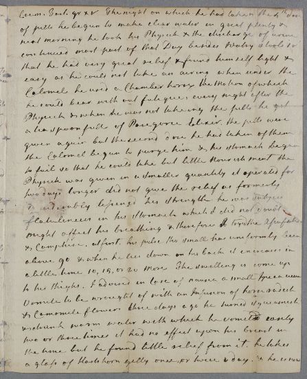 the Calomel had begun to purge him & his stomach