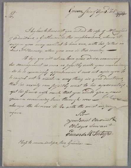 [ID:1620] From: Mr Everard McIntyre / To: Dr William Cullen (Professor Cullen) / Regarding: Mr Craufuird (Craufurd, of Ardmilland) (Patient) / 2 February 1779 / (Incoming)