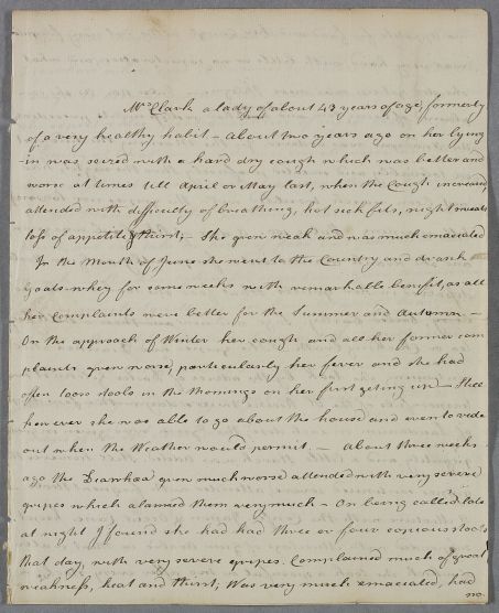 Case of Mrs Clark who has had a persistent cough as the result of a long-standing hectic fever now accompanied by diarrhoea. |