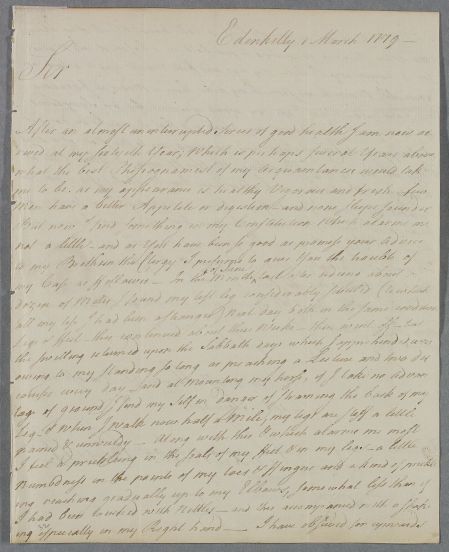 [ID:1635] From: Reverend Alexander Coull / To: Dr William Cullen (Professor Cullen) / Regarding: Reverend Alexander Coull (Patient) / 1 March 1779 / (Incoming)