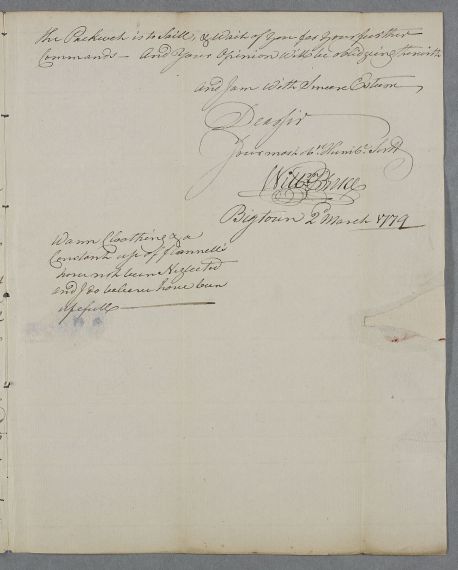 | Summary | Letter from William Bruce, writing from Bigton, Shetland, concerning his own case. |