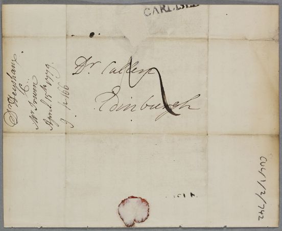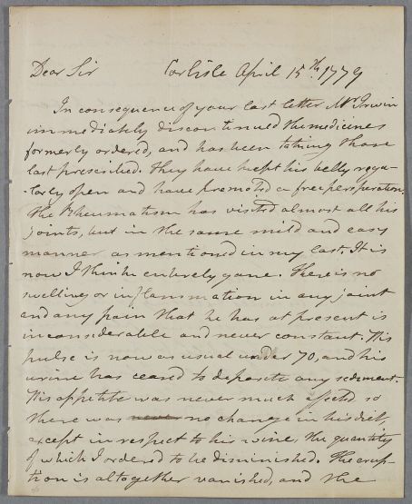 [ID:1655] From: Dr John Heysham / To: Dr William Cullen (Professor Cullen) / Regarding: Mr Thomas Irwin (Irwine, at Moss Side) (Patient) / 15 April 1779 / (Incoming)