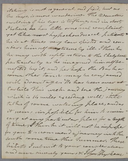 | Summary | Letter from John Heysham concerning the case of Mr Irwin. |