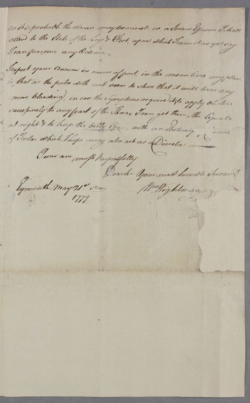 attend to the state of the Legs & Feet, upon which I cannot as yet say