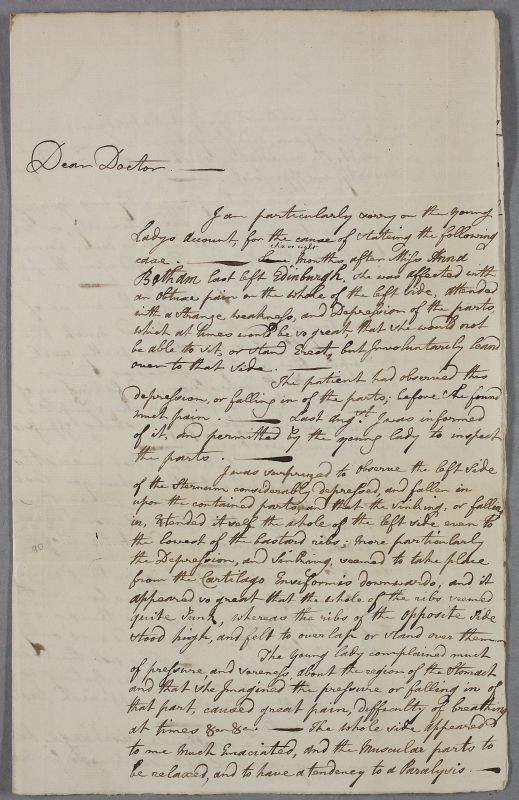 Letter from Dr Patrick Scott concerning the case of Miss Anna Betham in the Isle of Man, who has a depressed sternum.