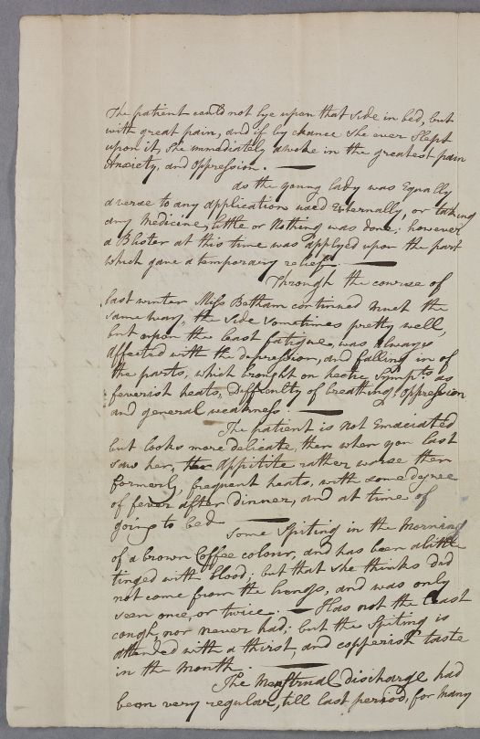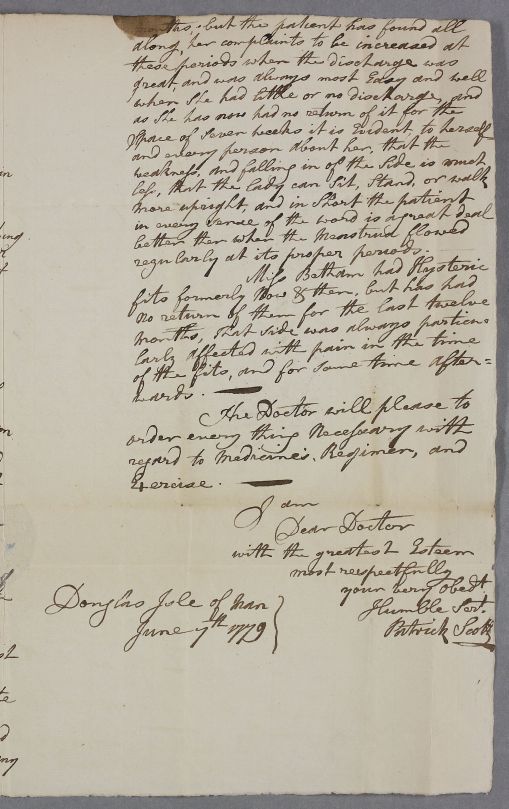 | Summary | Letter from Dr Patrick Scott concerning the case of Miss Anna Betham in the Isle of Man, who has a depressed sternum. |