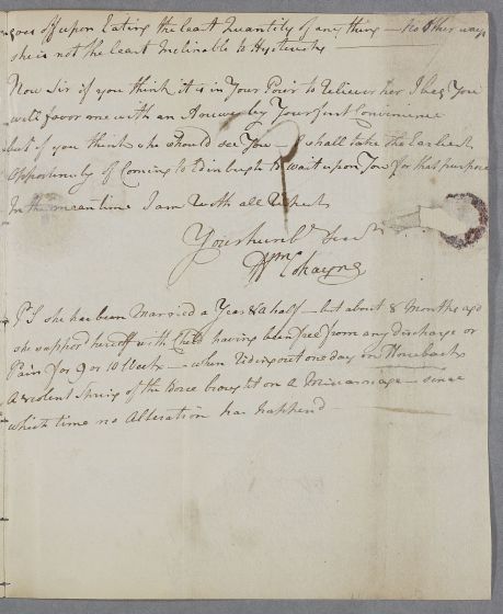 Now Sir if you think it is in Your Power to relieve her I beg you