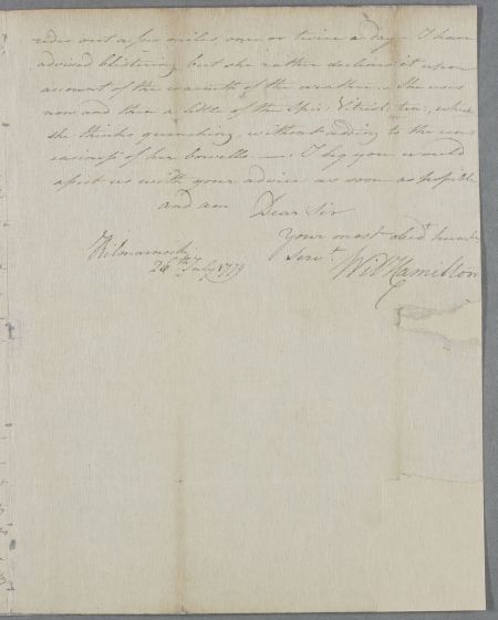 [ID:1710] From: Dr William Hamilton / To: Dr William Cullen (Professor Cullen) / Regarding: Mrs Paterson (Patient) / 26 July 1779 / (Incoming)