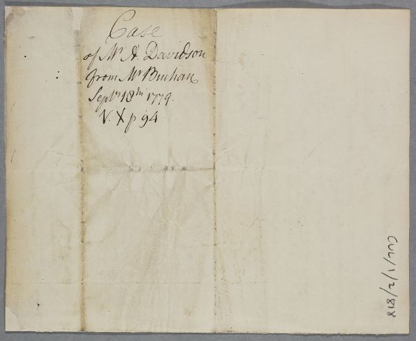 [ID:1731] From: Mr Buchan / To: Dr William Cullen (Professor Cullen) / Regarding: Mr A Davidson (Patient) / 18 September 1779 / (Incoming)