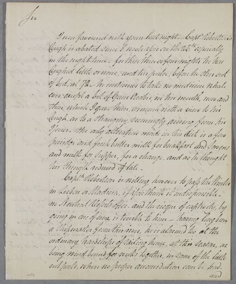 I was favoured with your last night. Captn Robertson's