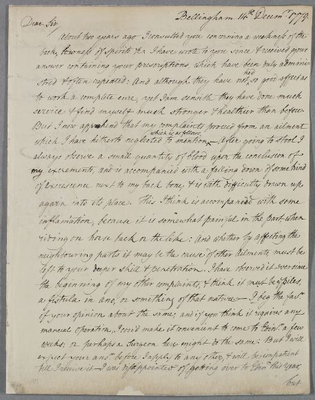 the beginning of my other complaints, & think it must be ye piles,