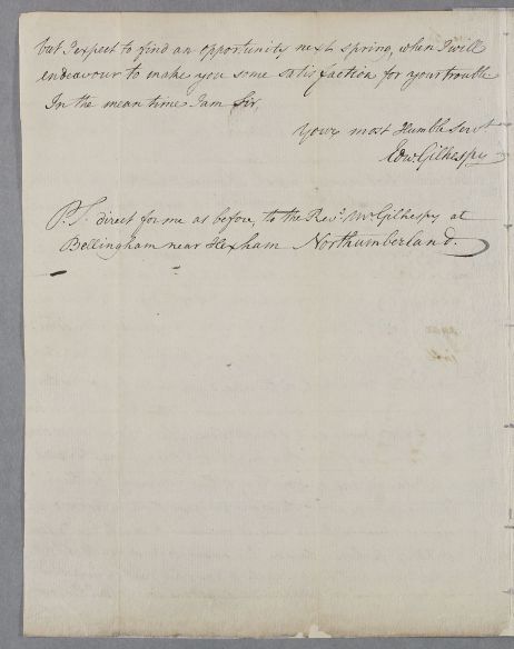 P.S. direct for me as before, to the Revd. Mr. Gilhespy at