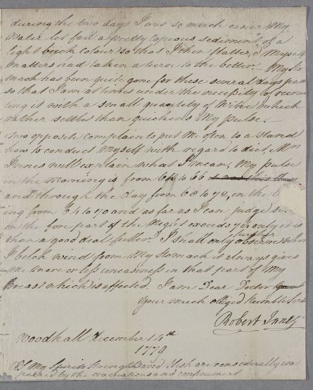 [ID:1774] From: Dr Robert Innes / To: Dr William Cullen (Professor Cullen) / Regarding: Dr Robert Innes (Patient) / 14 December 1779 / (Incoming)