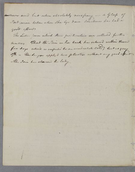 Case of Mrs Cathcart who has back pain after labour, and corresponds with Cullen through her brother John Buchan, then situated in Edinburgh. |