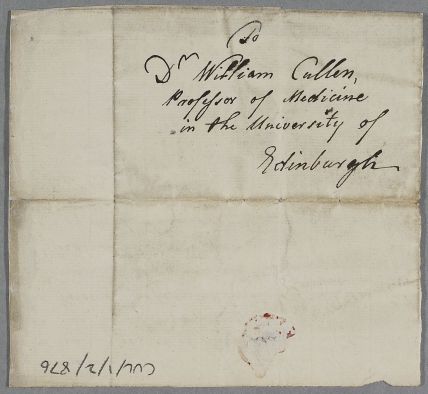 | Summary | Brief notes on directions and possible treatment, written on the reverse of an incoming letter; probably a summary draft of an outgoing letter. No date, although must have been written after Cullen's move to Edinburgh in 1755 given the incoming letter's address. Categorised as an outgoing document because the substance is the retained summary of Cullen's advice to an unnamed patient. |