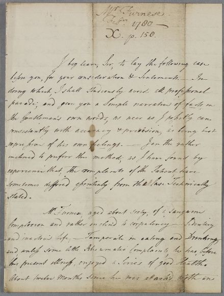 | Summary | Letter from A. Scott, concerning the case of Mr Furnese. |