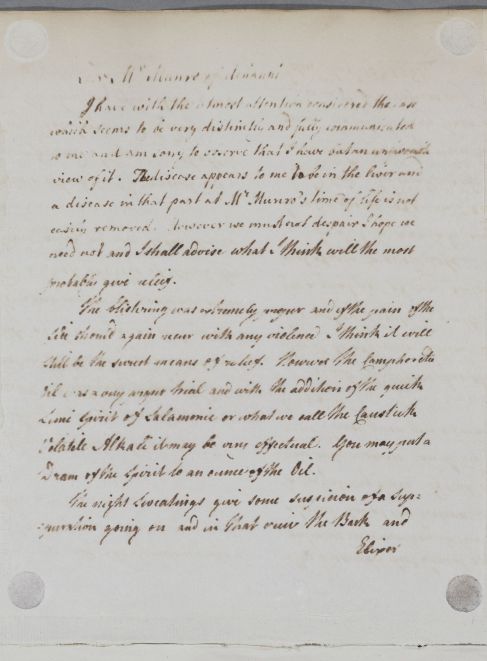 | Summary | Letter to [John Farquhar], 'For Mr Munro of Achanni', concerning the patient's suspected liver disease. |